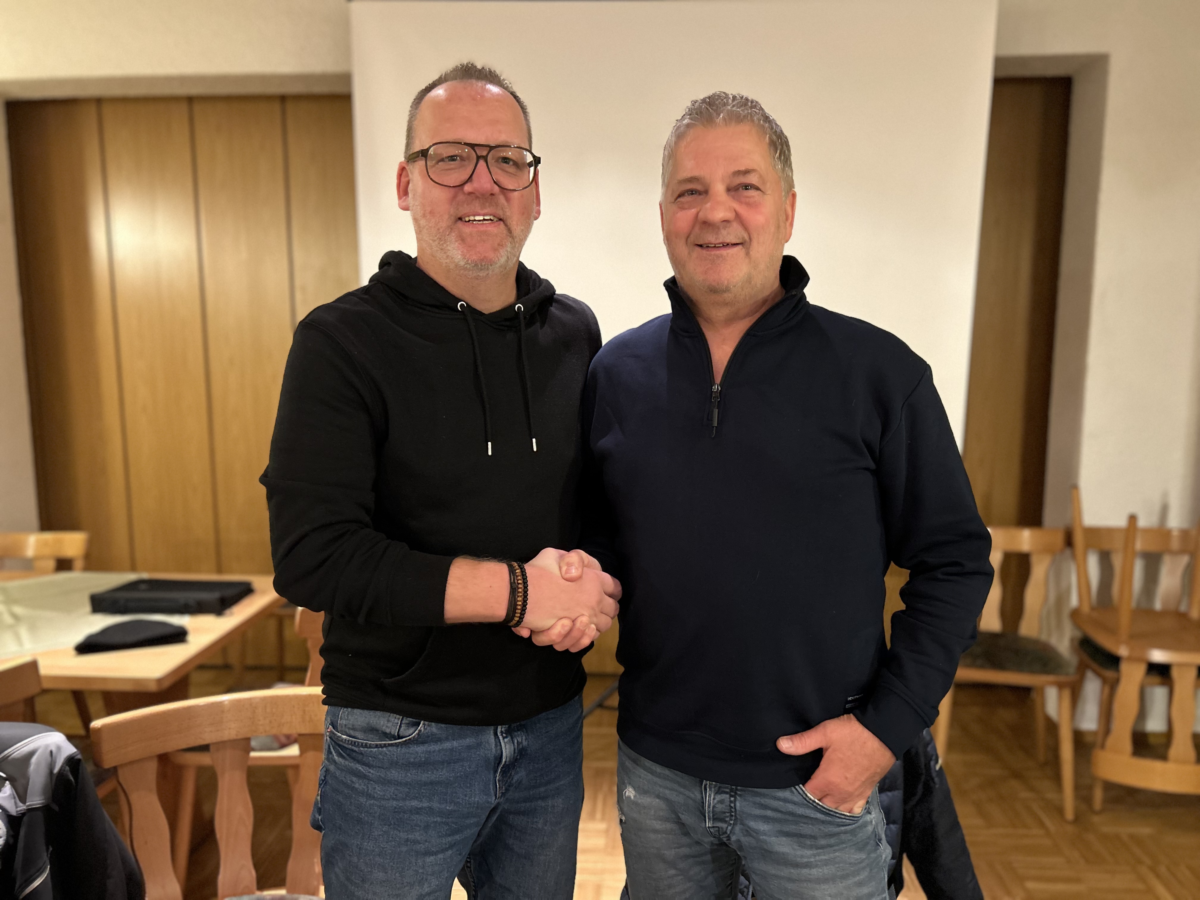 Zum Nachfolger hat die Versammlung einstimmig unseren Ortschaftsrat und stv. Ortsvorsteher Stefan Goppelsröder gewählt. Auf dem Foto nimmt er die Glückwünsche des 2. Vorsitzenden, Volker Just, entgegen. Wir gratulieren Stefan zu seiner Wahl und wünschen ihm alles Gute in seinem neuen Amt.